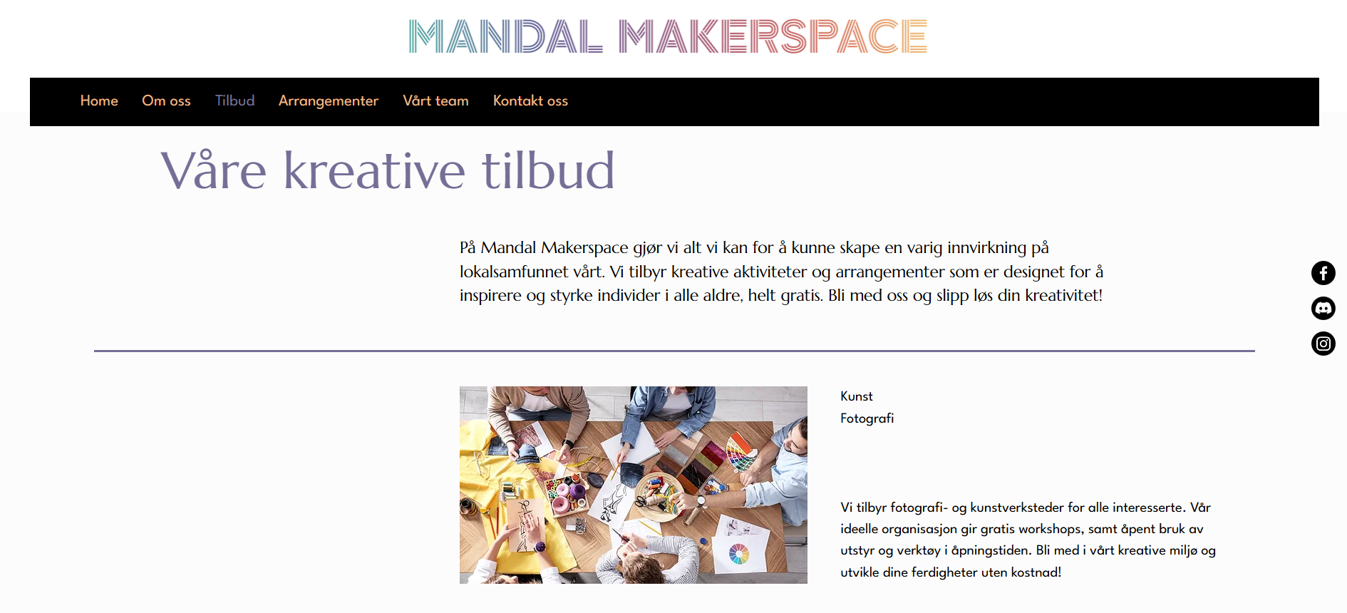 Nettside, innhold og sosiale medier for Mandal Makerspace